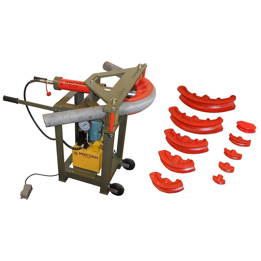 Трубогиб гидравлический с электроприводом является профессиональным оборудованием и предназначен для гибки газо-водопроводных труб по ГОСТ 3262-75, а также проката круглого сечения, прочностные характеристики которого не превышают характеристик трубы 3" (условный проход 80 мм). Устройство станционарное с электроприводом и электрическим распределителем и педалью.