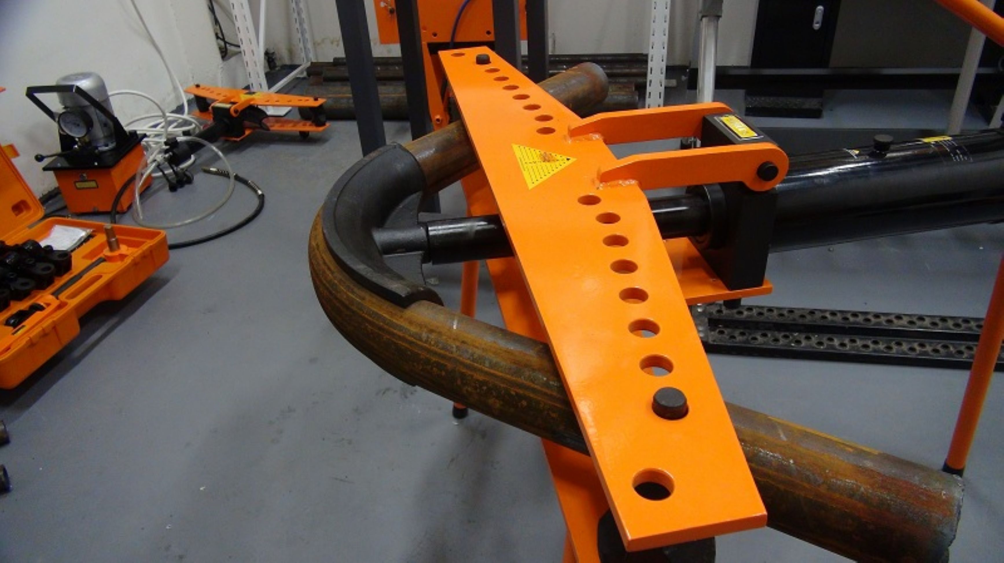 Тип станка – ручной гидравлический отличен от других вариантов ручных трубогибов тем, что его привод усилен гидравликой. Это позволяет монтажнику прикладывать меньше усилий при гибки стальных труб, и затрачивать на гибку гораздо меньше времени.