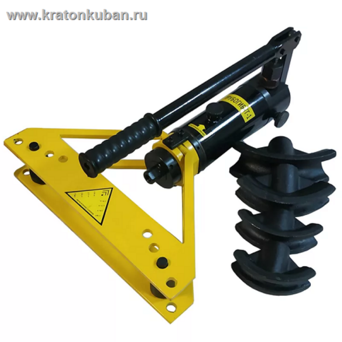 Гидроцилиндр модели ТГ 1 оснащен поршнем оптимального размера, что позволяет купить гидравлический трубогиб для работы с трубами используемыми во внутри домовом хозяйстве. Состоит аппарат из гидравлического насоса, совмещенного с гидравлическим цилиндром, наконечник которого завершается сменным гибочным сегментом. Для удобства перемещения агрегат снабжен регулируемыми опорными ножками. Реализуется в комплекте с металлическим кейсом для хранения и набором гибочных сегментов из чугуна (башмаков) с параметрами от 3/8" до 1".
