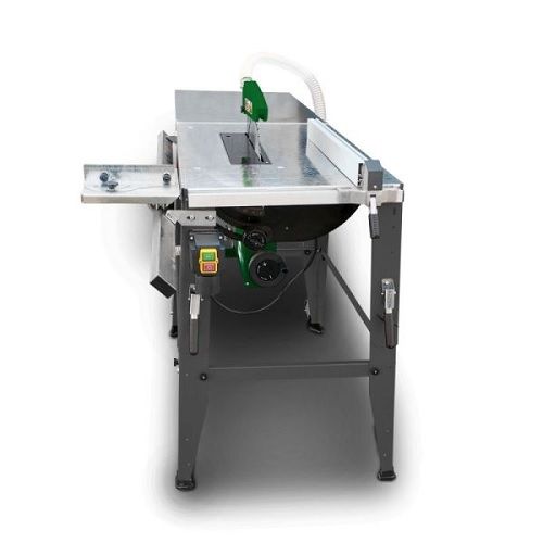 - Имеет большой распиловочный стол 800x550 мм, который изготовлен из оцинкованной стали. Также для работы с длинными заготовками предусмотрен удлинитель рабочего стола, который может быть смонтирован слева или справа