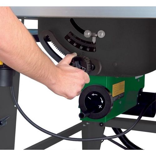 - Регулируемый наклон пильного диска на угол от 0° до 45°. Удобная и быстрая настройка наклона и высоты пильного диска с помощью маховиков