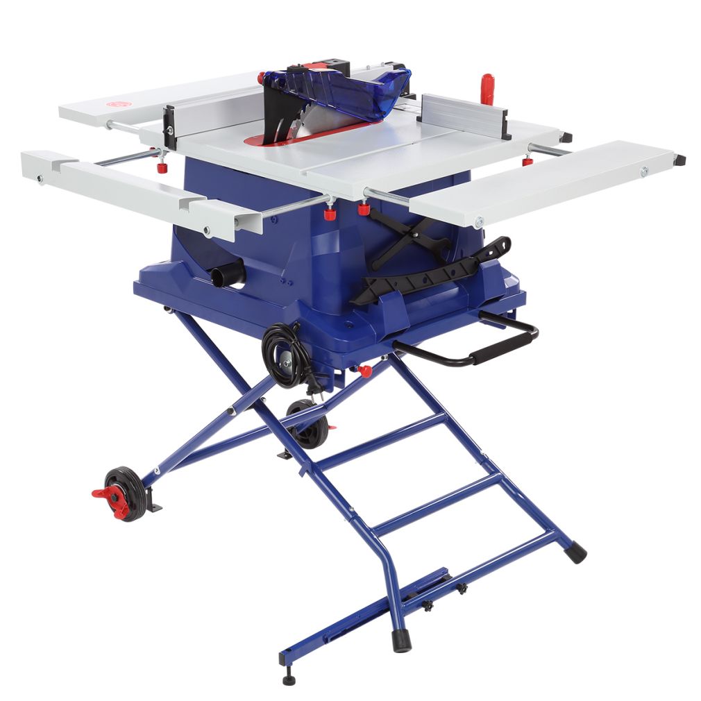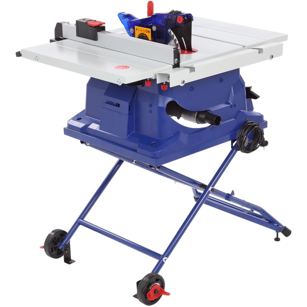 - Станок имеет мощный однофазный коллекторный двигатель - 1800 Вт (режим S1). В качестве режущего инструмента используются пильные диски с наружным диаметром 255 мм с наклоном от 0 до 45 градусов (влево). Максимальная высота пропила - 80 мм (без наклона диска).