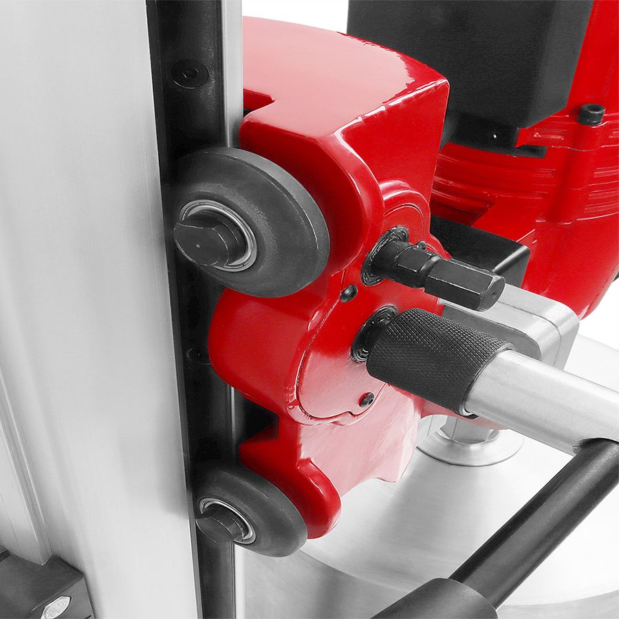 Установка алмазного бурения MESSER DM350E-N оснащена надежной стойкой с функцией наклона, что позволяет производить бурение под различными углами.