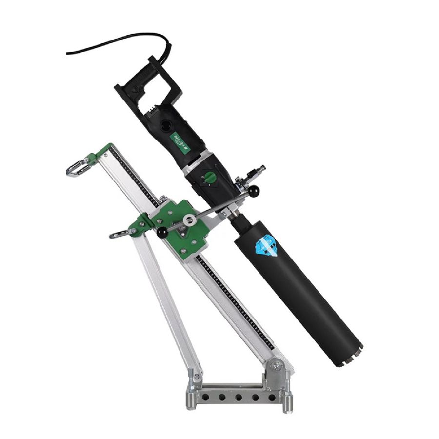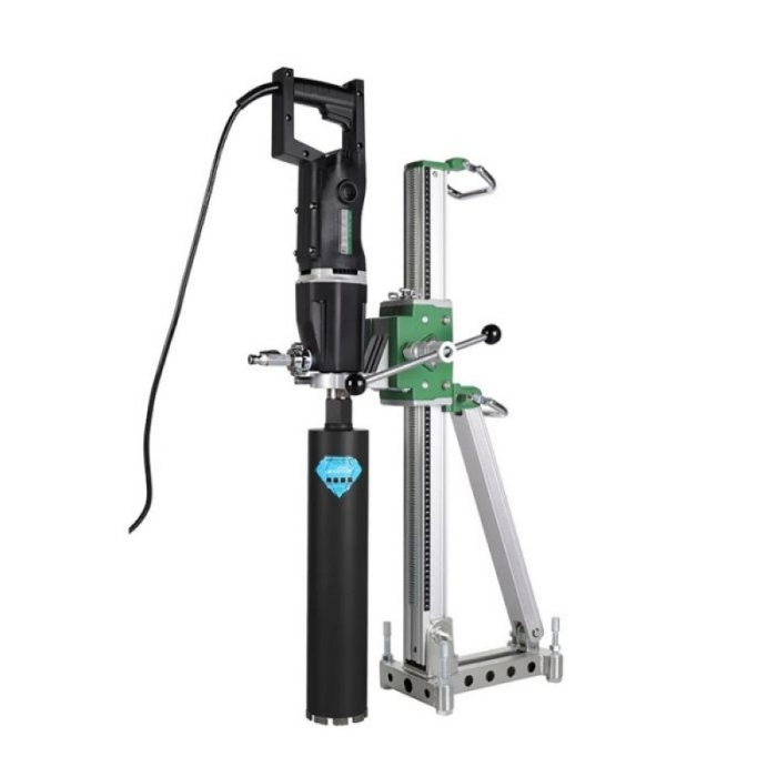 Установка алмазного сверления Bycon UNI-130D (DMP-132D+DSP-162) - установка алмазного бурения промышленного класса для сверления со станины отверстий среднего и большого диаметра до 160 мм. Станина с упор-откосом. Есть индикатор нагрузки мотора. Сверление можно проводить под углом до 45 градусов.