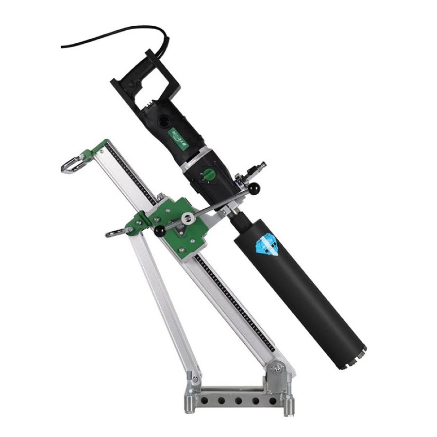Установка алмазного сверления Bycon UNI-200DB (DB-162D+DSP-252) - установка алмазного бурения промышленного класса для сверления со станины отверстий среднего и большого диаметра до 200 мм. Станина с упор-откосом. Есть индикатор нагрузки мотора. Сверление можно проводить под углом до 45 градусов.