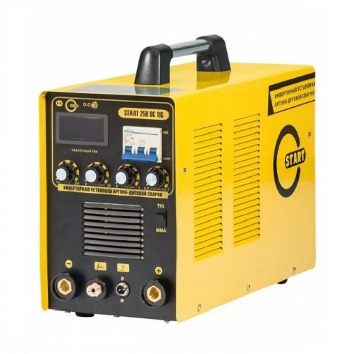 Установка аргонодуговой сварки Start 250 DC TIG - универсальный сварочный инвертор предназначенный для аргонодуговой сварки (TIG) c функцией импульсной сварки и для ручной дуговой сварки (MMA). Данный источник имеет безконтакстный поджиг дуги. Импульсный режим будет полезен на малых токах сварки. В течении сварочного цикла ток меняется от максимального (ток импульса) до минимального (ток паузы). Это позволяет уменьшить нагрев металла (детали) и стабилизировать дугу. Данный аппарат имеет полноценную настройку параметров импульса - ток паузы и частота импульсов.