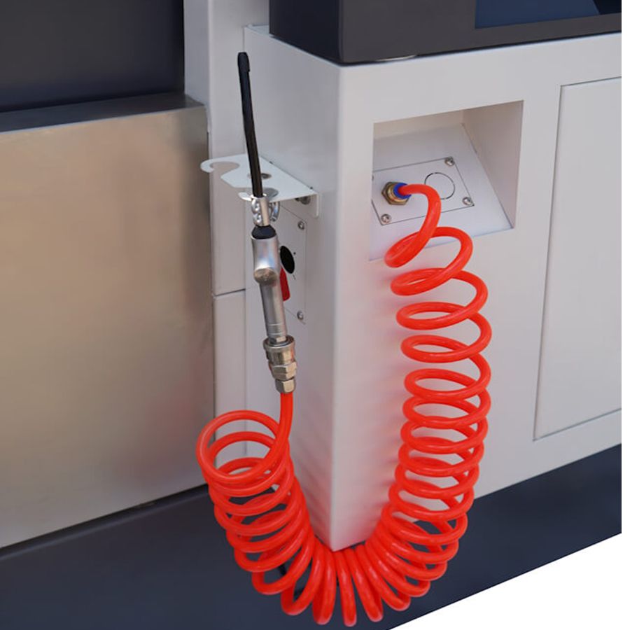 В стандартную комплектацию станка входит пневмопистолет, расположенный снизу стойки ЧПУ.