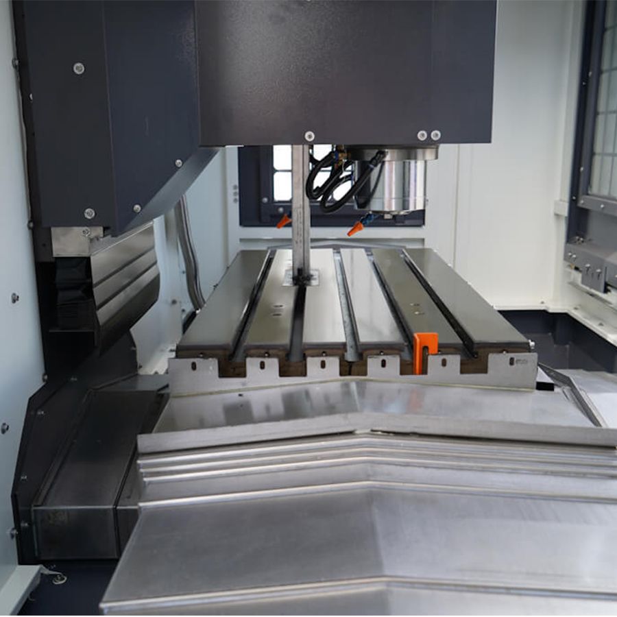Размер рабочего стола составляет 1000х500 мм, который оснащен Т-пазами размером 5х18 мм, Линейные направляющие стола и ШВП защищены металлическими направляющими.