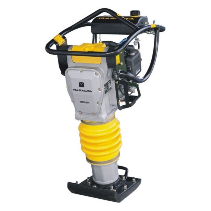 Вибротрамбовка Masalta MR 68 H - используется для уплотнения связных почв, песка и гравия. Максимальная глубина уплотнения составляет 85 мм. Сила удара 1300 кг. Трамбовка оснащена бензиновым двигателем Honda GX100 мощностью 3 л.с. Емкость топливного бака 2,8 л. Интегрированный топливный клапан обеспечивает быстрый запуск двигателя. Топливный бак выполнен из пластика, что позволяет избежать коррозии и увеличивает срок службы. Подошва из слоеного дерева и металла поглощает и гасит вибрационную нагрузку. Защитная рама предотвращает возможные повреждения двигателя. Дополнительно можно приобрести колесный комплект для удобства транспортировки.