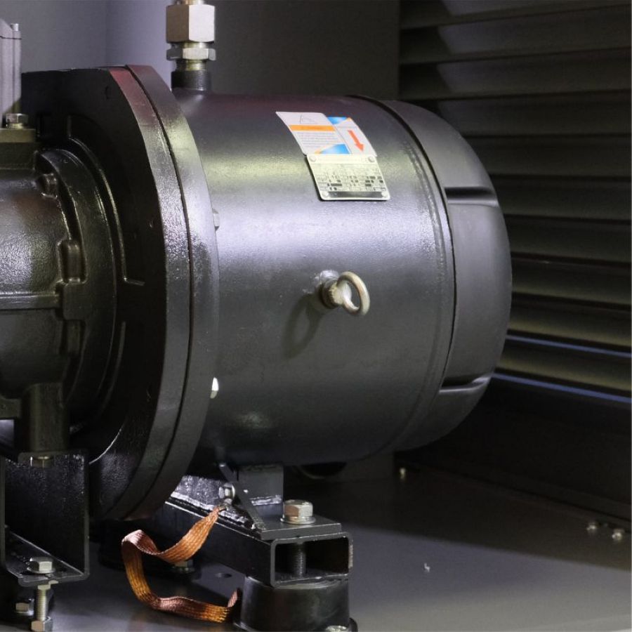 - Масляное охлаждение двигателя: Модели линейки DIGI до 90 кВт комплектуются электродвигателями с высочайшей степенью защиты IP65. Данный класс обеспечивает защиту двигателя даже от воды, что обеспечивает работу компрессора в самых тяжёлых и экстремальных условиях. Охлаждение двигателя осуществляется за счёт масла из общего контура, а любое попадание влаги или мусора на обмотку исключено.