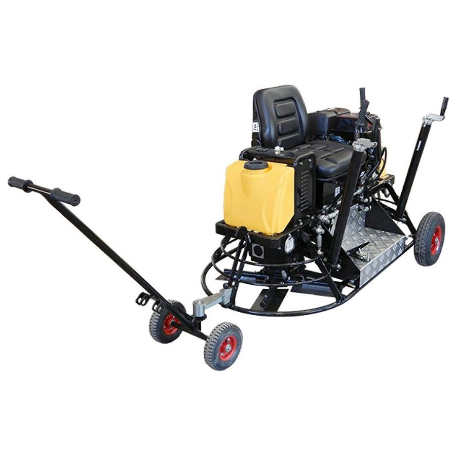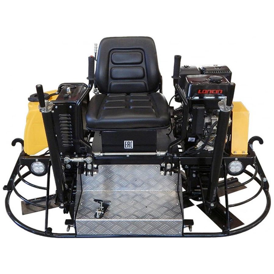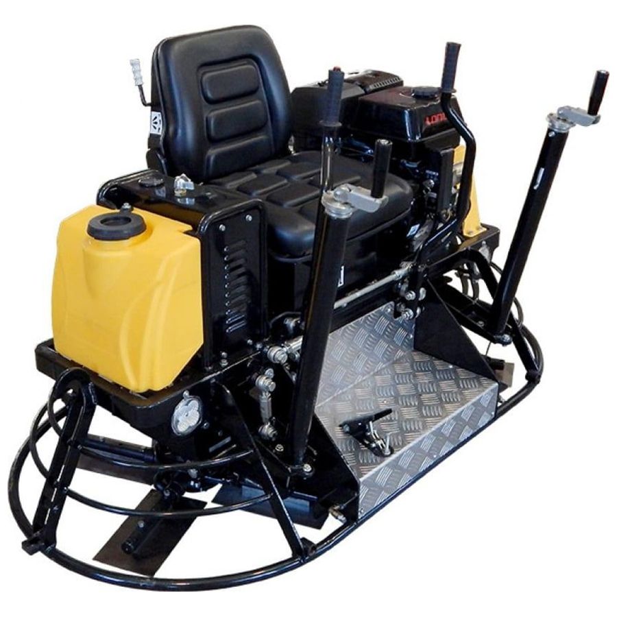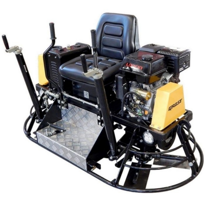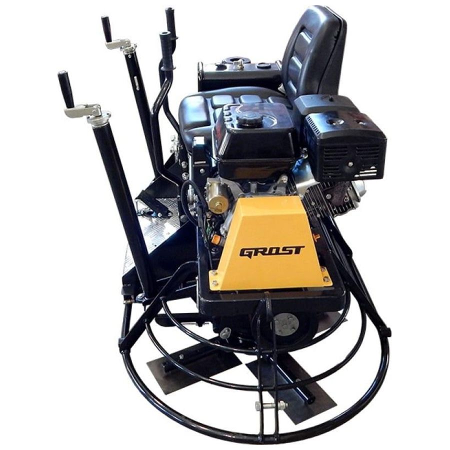 Затирочная машина двухроторная бензиновая Grost ZMD-750C - эта двухроторная затирочная машина управляется сидящим на ней оператором. Машина укомплектована мощным бензиновым двигателем Honda GX390 мощностью 11.7 л.с. (8.7 кВт) с электрическим запуском. В состав двухроторной затирочной машины GROST ZMD-750C входят комплект лопастей, транспортировочные колеса, предназначенные для перемещения затирочной машины на рабочей площадке и для замены лопастей, фары, бак для воды, спрей-система, АКБ. Рабочий диаметр 2х770 мм, для бетона. Производитель дает гарантию на все оборудование сроком 1 год.